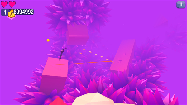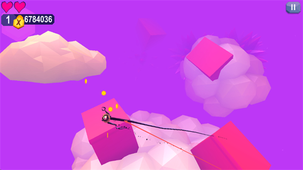 1、轻击屏幕控制触须精灵在粉色方块间移动,收集金币积累分数。