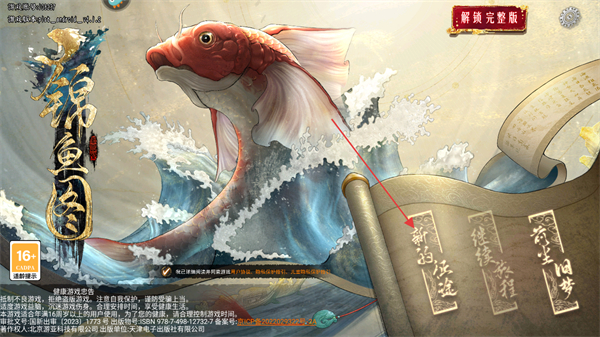 1、在锦鱼图启动界面,勾选同意协议后,点击新的征途按钮,即可开启游戏的初始流程。