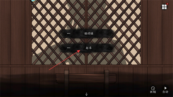 2、进入剧情选择界面后,点击起床选项,即可结束当前选择环节,推进后续的游戏剧情进程。