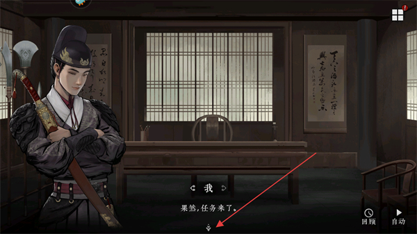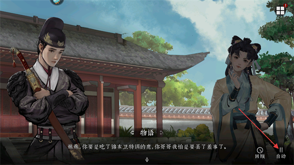 4、在与角色的对话环节中,可点击自动按钮自动播放后续对话,了解这段剧情中的内容,推进游戏流程。
