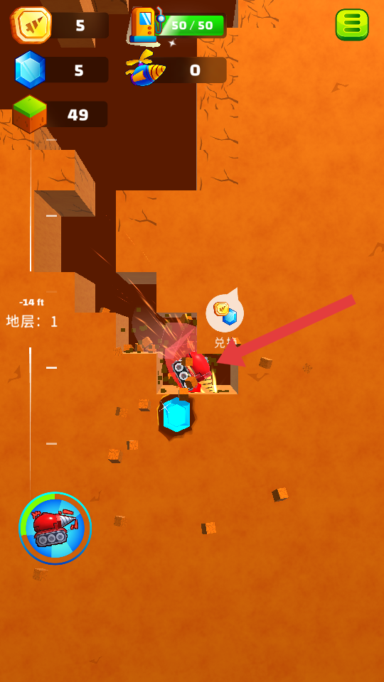 4、操控挖矿车朝着箭头指向的兑换标识方向移动,进行资源兑换操作,将收集的资源转化为金币或其他道具。