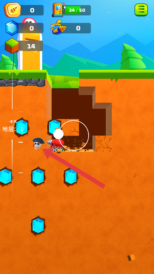 2、差异化关卡设计:关卡数量丰富且难度各不相同,从浅层易挖的土层到深层复杂的地质结构逐步递进,均散落实用道具,助力玩家高效通关。