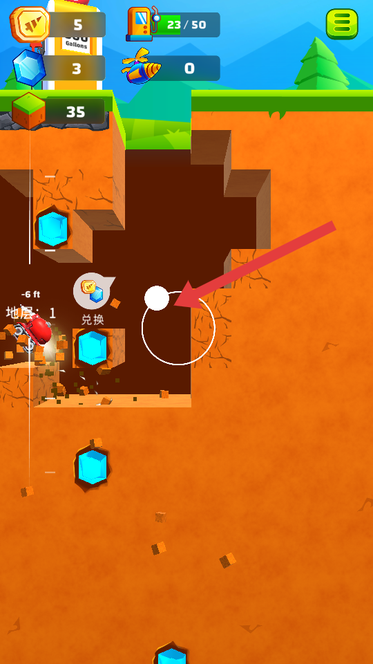 2、挖掘与道具运用:操控挖掘机向地底深处挖掘,过程中留意埋藏的宝物与燃料补给点,拾取关卡中出现的道具,提升挖掘效率延长燃料续航。