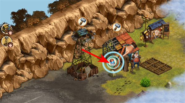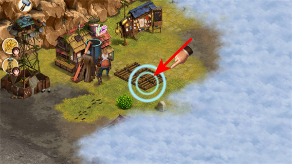 4、修复完成后,点击红色箭头指向的新互动区域木架,可触发下一个场景互动,推进流程。