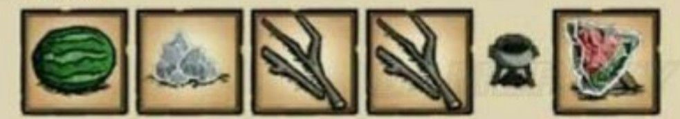 材料廉价的回血食物,3个水果加一个树枝就可以做出来不一定用椰子,也可以用香蕉,石榴,西瓜,但是偏偏浆果就是不行,没食物了可以吃这个凑合着过,海难食物大都是偏回血的。