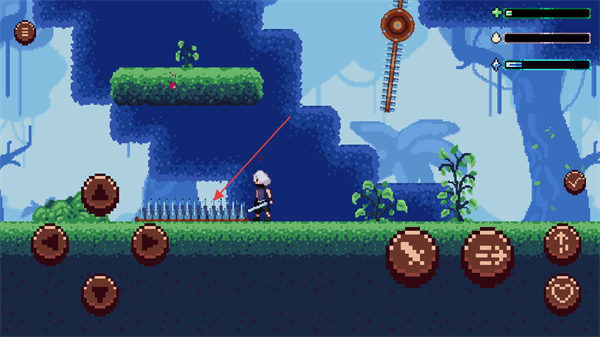 4、在关卡地图中一定要小心地面上突然冒出的地刺陷阱,各处都遍布着危险,时刻要关注角色血量。