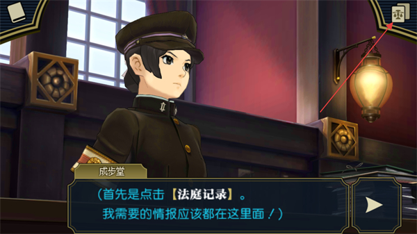 4、进入大法庭后,回答法官提出的相应问题,当不会的问题可以点击右上角的法庭记录获取帮助。