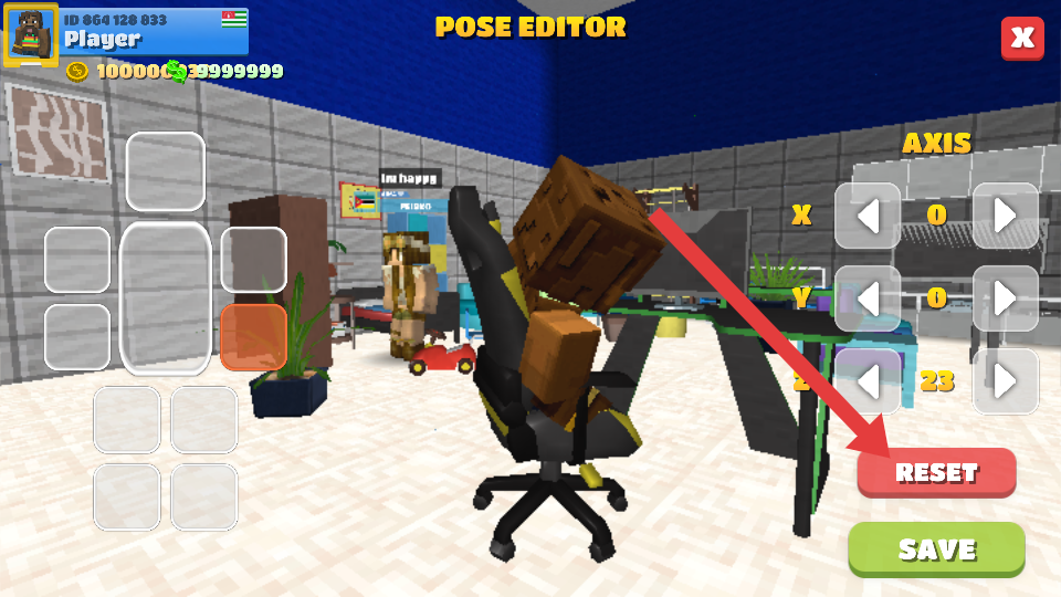 3、调整过程中,若对姿势不满意,可点击重置按钮恢复初始状态,当调整出满意的姿势后,点击按钮,将自定义姿势保存下来。