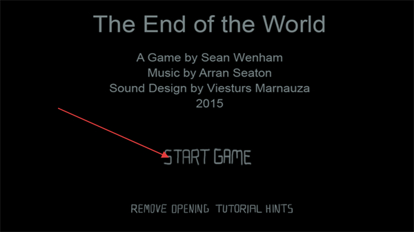 1、进入世界的尽头启动界面后,点击界面中的STARTGAME按钮,即可开启该游戏的游玩进程。