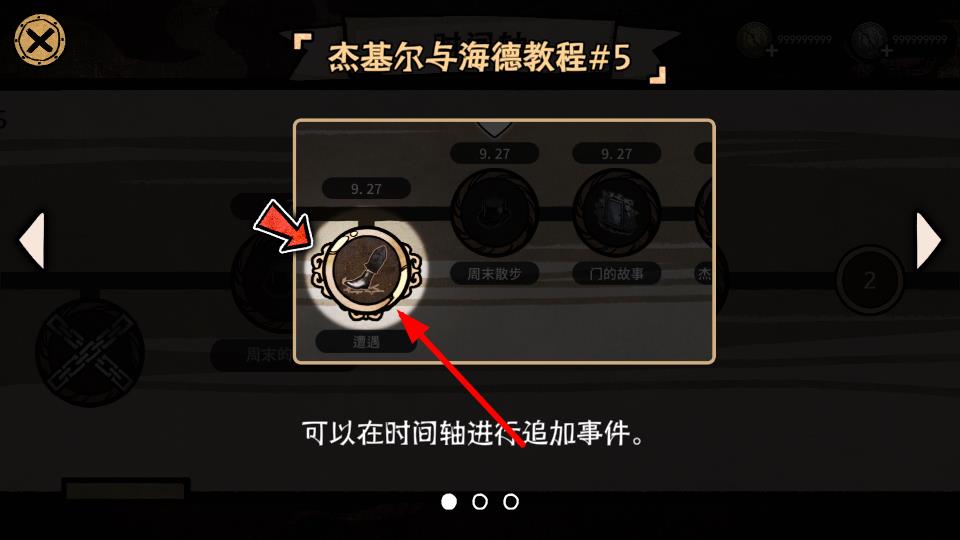 4、在时间轴中进行追加事件,可补充剧情、获取额外信息,时间轴系统梳理剧情脉络、探索内容重要工具。