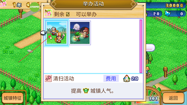 1、在菜单内可以通过花费城镇点数,选择想要举办的城镇活动。