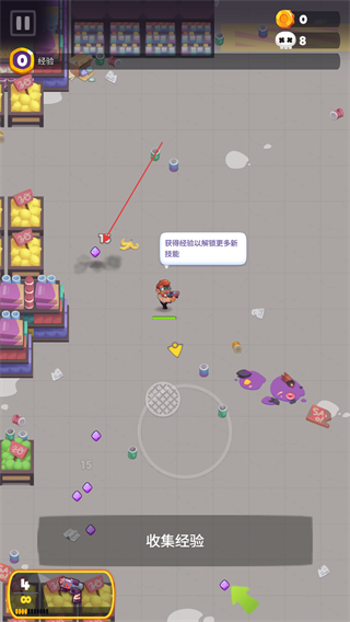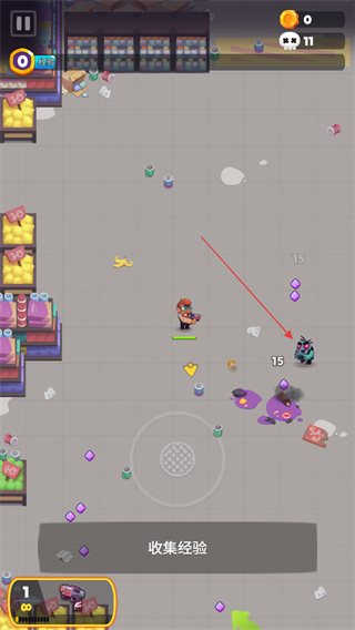3、击杀的僵尸将会掉落经验石,获取后可以提升上方的经验条。
