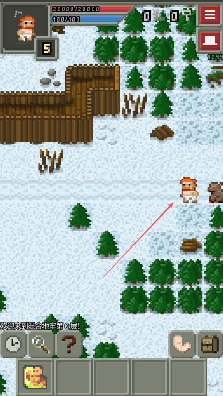 1、进入游戏查看左上角角色信息,如生命值20000/20000等,在雪地场景移动探索。