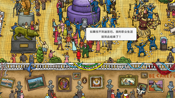 2、在人群场景里识别目标,找到穿绿衣服的角色,推进迷宫探索进度。