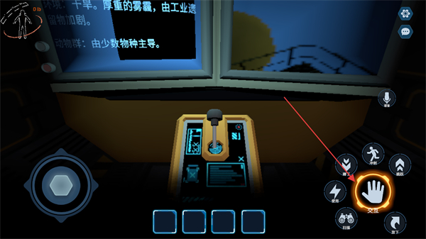 2、点击交互按钮,操作终端上的装置如把手,推进流程。
