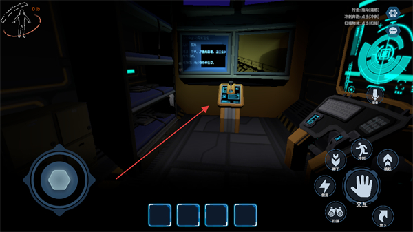 1、在船舱内互动黄色终端设备,触发剧情或获取信息。
