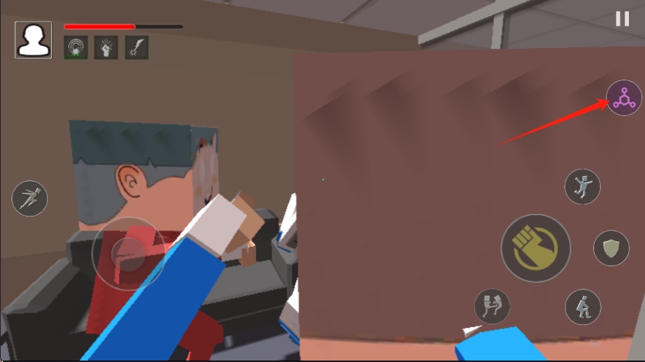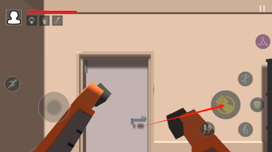 1、游戏中,点击右侧拳头图标,可发动近战攻击,用应对近距离的敌人或障碍物,近距离战斗手段。
