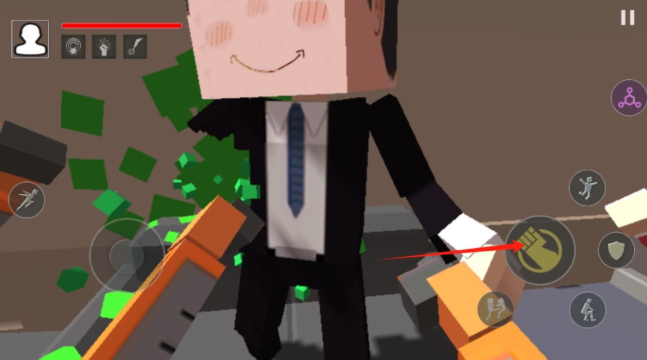 2、遇到西装类敌人时,使用拳头攻击可对其造成伤害,快速将其击败,保障在场景中的安全并推进游戏。