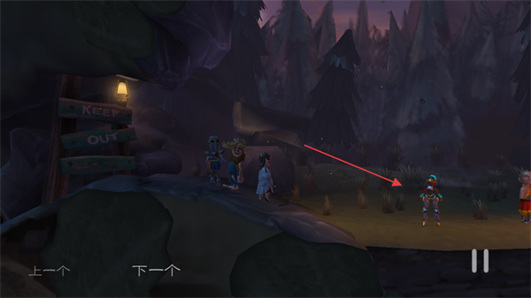 4、查看新场景中的双胞胎角色提示,继续推进冒险剧情。