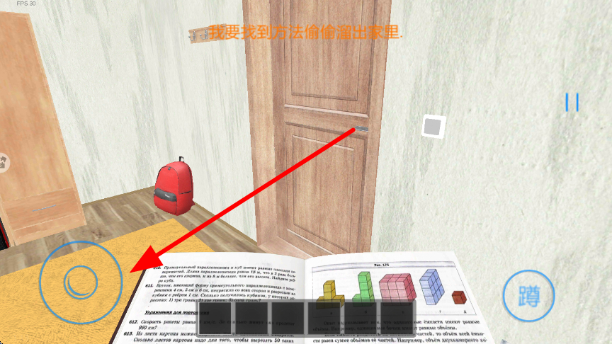 2、在房间内,可通过操作移动键,在房间中探索,寻找能帮助偷偷溜出家里的方法,同时要注意躲避父母,避免被父母发现。