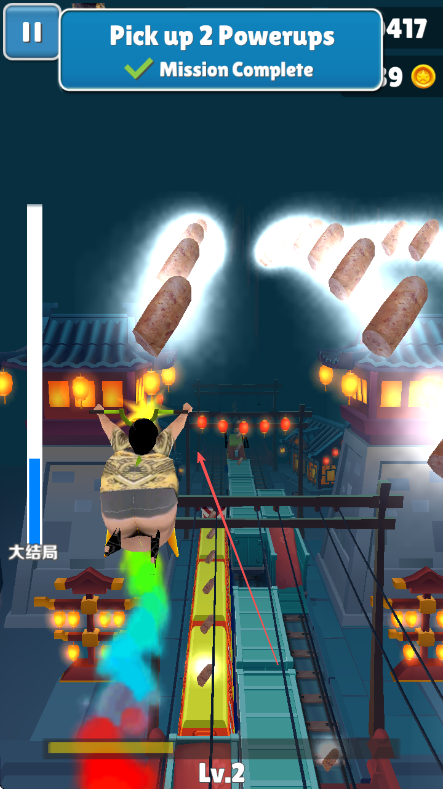 4、在奔跑过程中,留意铁轨上和列车上的食物道具,及时收集,持续前进提升等级和分数。