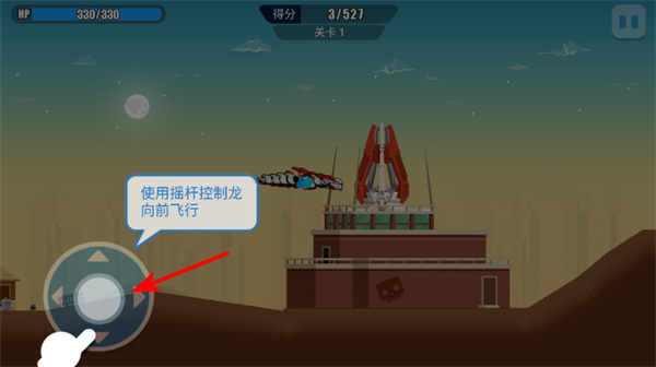 1、进入游戏后,使用摇杆控制机械龙向前飞行,这是探索关卡的关键操作,操控机械龙移动。
