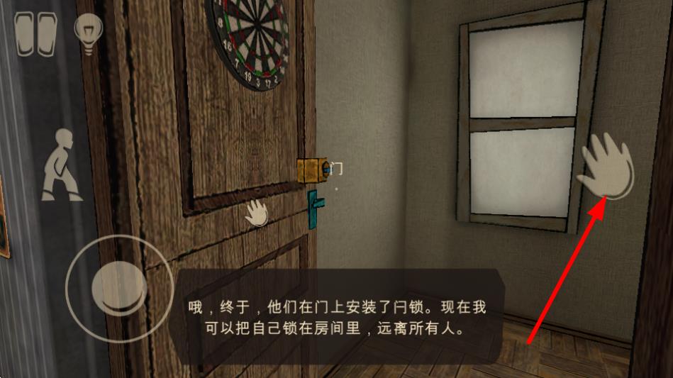4、门上的门锁是剧情和玩法的关键元素,对话哦终于,他们在门上安装了门锁,现在我可以把自己锁在房间里。