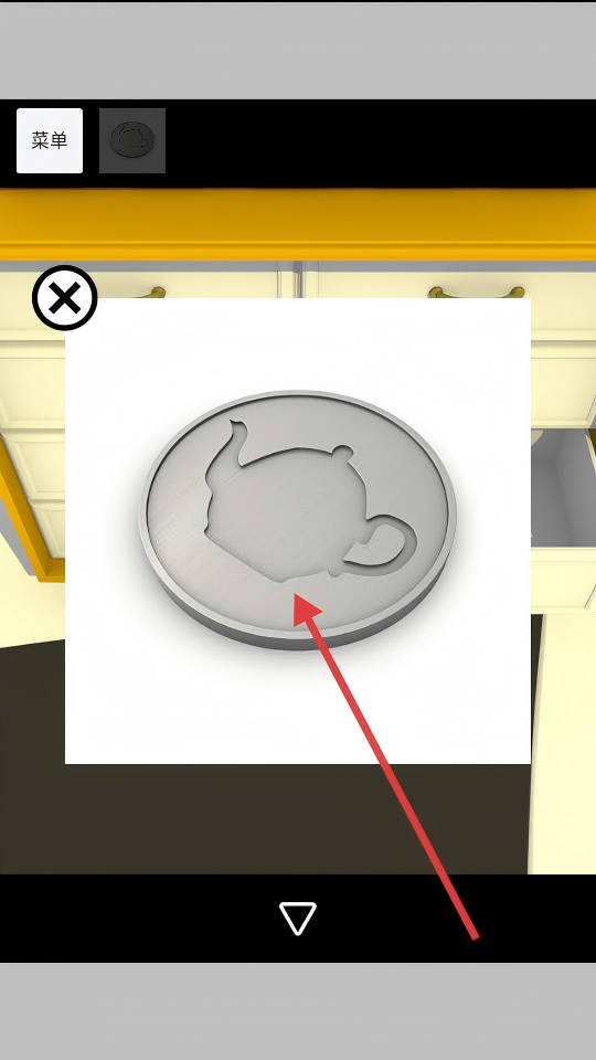3、解开柜子谜题,打开正确的柜子抽屉后,可获得茶壶-形状硬币,为后续解谜做准备。