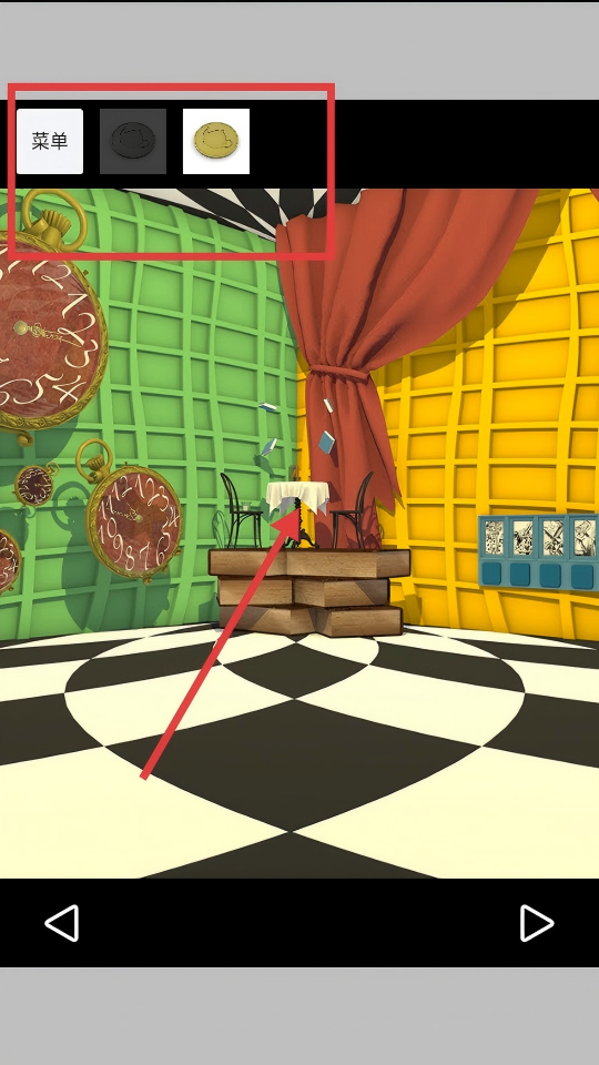 1、道具搜寻操作:进入场景后,需点击可疑物体(如白色柜子的格子、漂浮的四本书)寻找道具(硬币、缩小药水),部分道具需完成小游戏才能获取,为后续解谜做好铺垫。