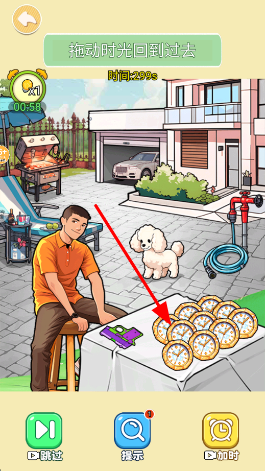 2、在场景里,会有与时光相关的元素,像钟表等,拖动这些时光元素,能够回到过去的场景,去探寻童年时期的各类事物。