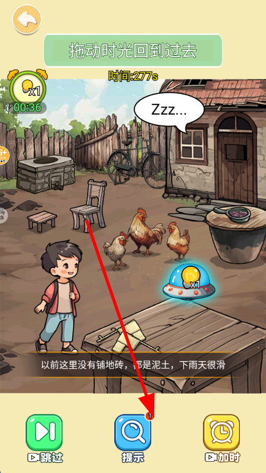 3、当在过去的场景中遇到解谜等困难时,可点击提示按钮,获取相关提示,借助提示推进解谜或探索进程,更好地体验时光穿越。