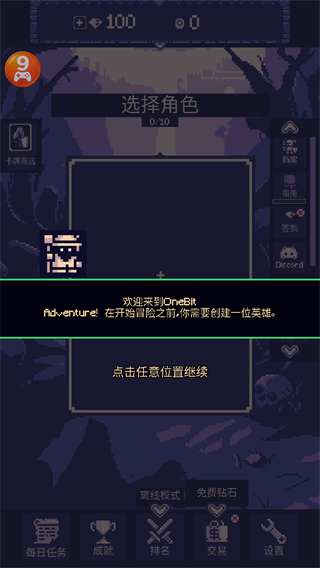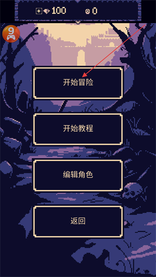 2、在该界面点击开始冒险可直接进入游戏,点击开始教程能学习玩法也能选编辑角色调整角色。
