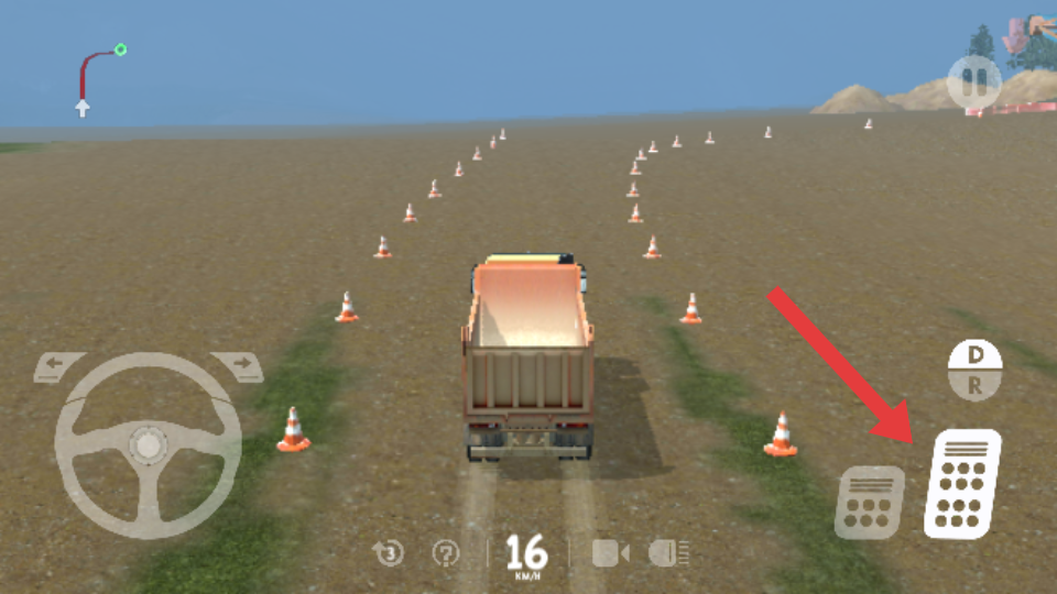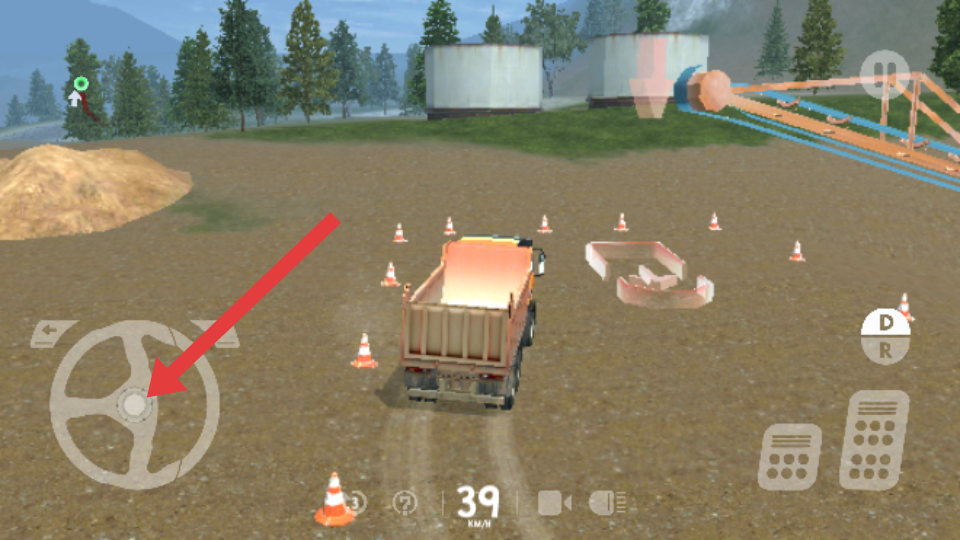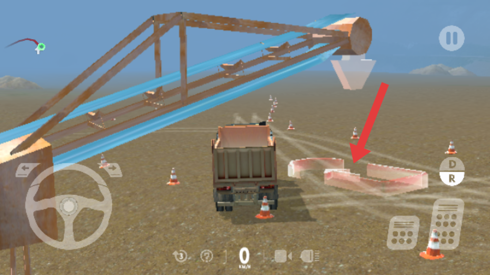2、操控箭头指向的方向盘区域,可调整卡车行驶方向,在有交通锥等障碍物的场景中,灵活转向以避开障碍,确保平稳行驶。