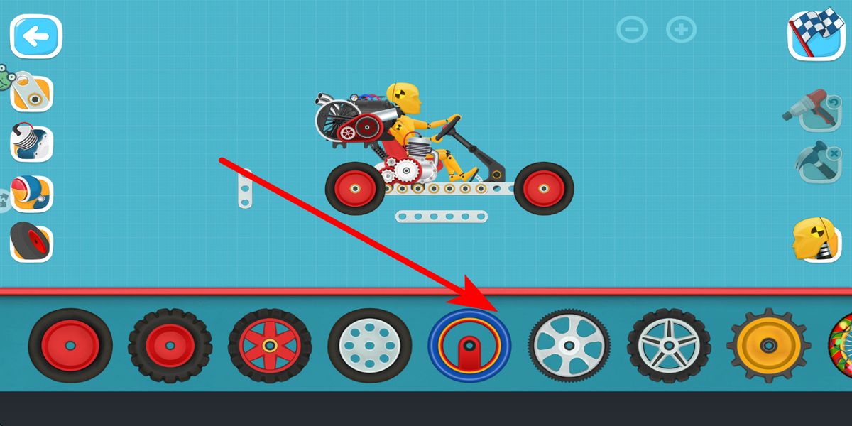 4、最后装轮胎,在轮胎选择区域,选择合适的轮胎,安装到车辆的车轮位置,轮胎保障车辆的行驶,完成轮胎安装后,车辆组装更趋完善。