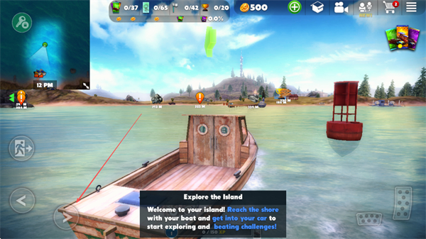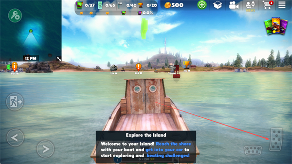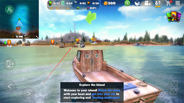 1、操控木船在水面行驶,根据提示向岛屿岸边移动,准备抵达陆地。