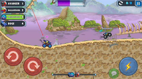 采用横版视角呈现赛车闯关过程,操作逻辑清晰直观,通过简单的操控实现车辆加速、减速、跳跃等动作,兼顾操作乐趣与闯关策略性。