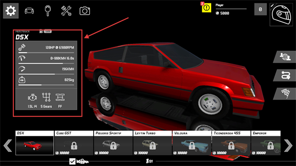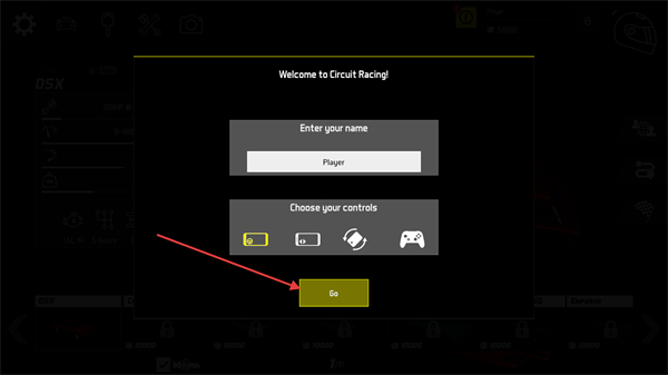 2、选择车型,查看其参数信息,确认后进入赛道选择环节。