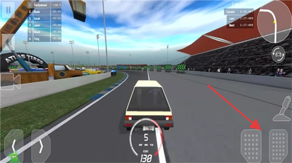 4、在赛道中通过右侧按键控制车辆加速、刹车,操控行驶完成赛道挑战。