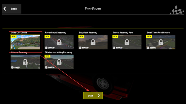 3、在界面选赛道,选择心仪的试驾赛道,点击开始自由驾驶。