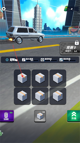 提供游戏币购买、盒子随机抽取两种部件获取方式,相同等级部件可升级强化,搭配比赛解锁的部件箱升级机制,让赛车性能提升有清晰方向,充满进阶乐趣。
