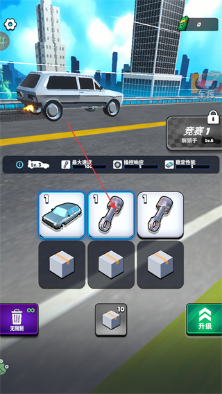 4、使用合成的高级零件升级车辆性能,提高比赛获胜概率。