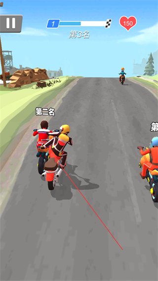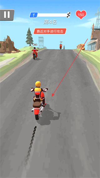 1、操控摩托靠近前方对手,按提示发起攻击,提升排名从第4名向前进阶。