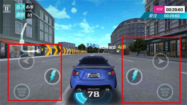 4、进入比赛后,界面两侧会出现按钮,左侧箭头按钮可控制车辆向左转向,右侧箭头按钮控制车辆向右转向。