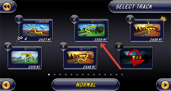 1、在游戏主界面,点击PLAY按钮,选择好游玩模式后进入赛道选择界面。