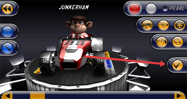 3、在车辆配置界面,确认当前车辆后,点击右侧的对勾按钮,进入比赛场景。