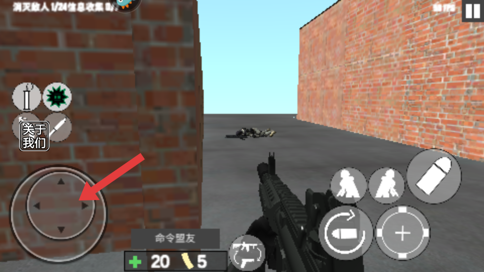 1、利用左侧方向键快速移动,留意点击右侧的子弹按键进行攻击,交替进行探头射击与缩回隐蔽动作。