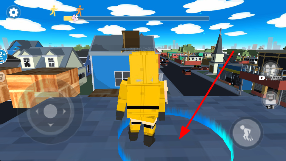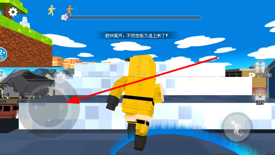 2、点击跳跃按钮,可以让角色快速跃起,可轻松跨越障碍,也能躲避从后方追来的老板。