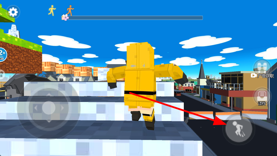 1、通过左侧移动按键,操控角色在像素场景中灵活移动,躲避危险,朝着安全区域前进。