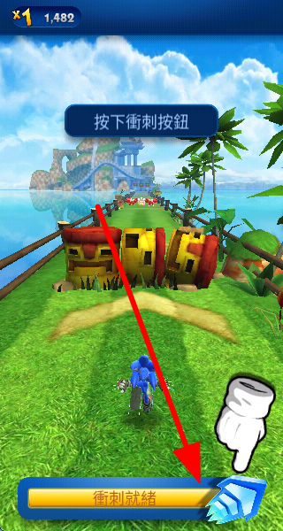 3、当冲刺量表准备好后,按下冲刺按钮,索尼克会快速冲刺,能更轻松地通过障碍,跑得更快更远。