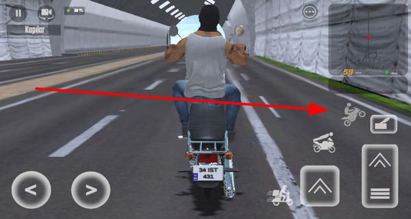 3、找到特技功能按钮,点击它可让摩托车做出特技动作,增加驾驶的趣味性和挑战性。